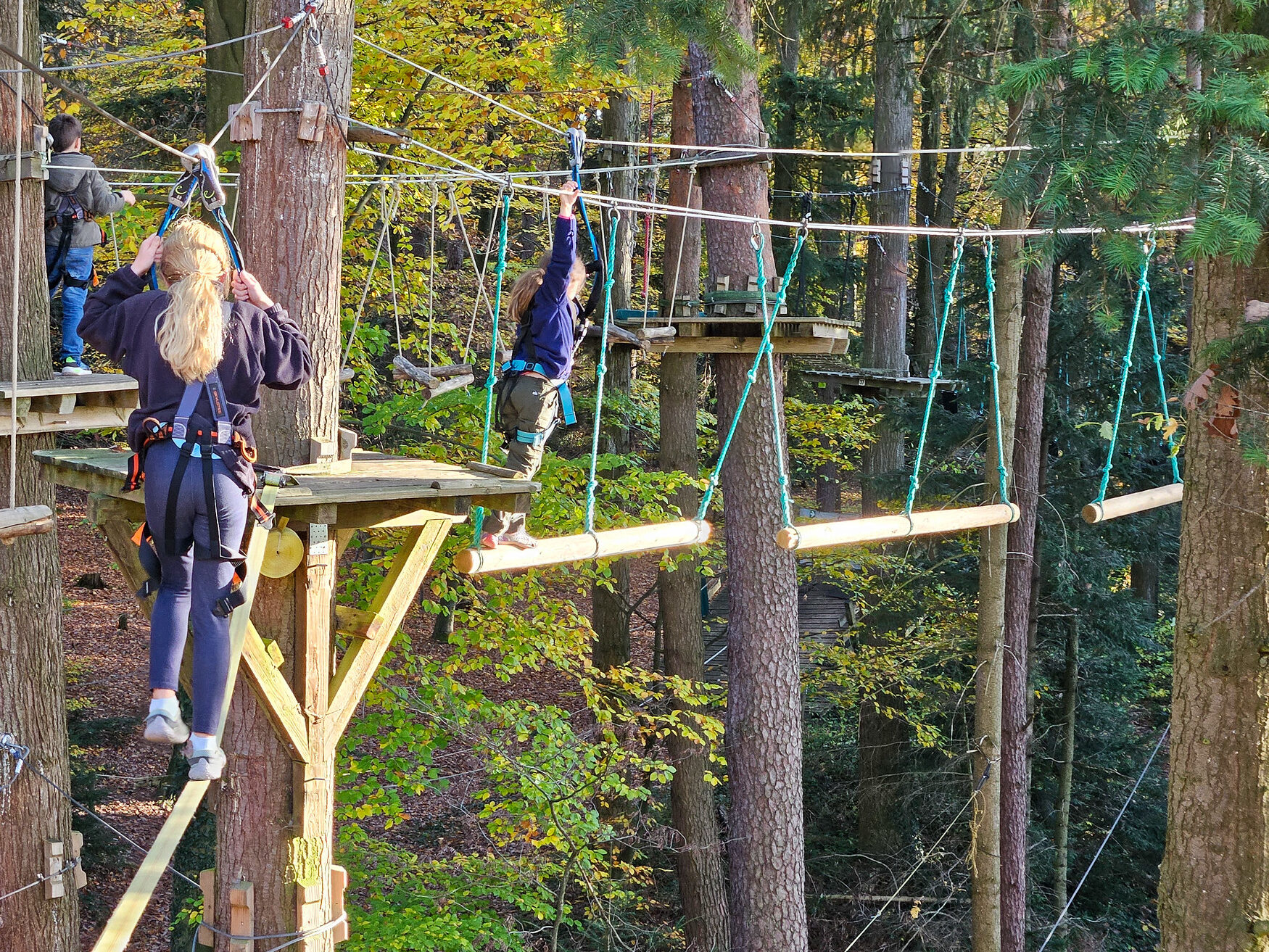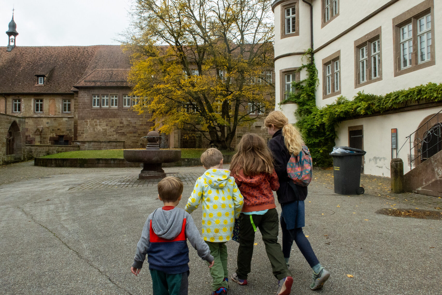 Even after our visitors, we continued to explore what we could before ending our time in Germany. We ate in a brasserie, rode a small street train, and toured a majestic yet lopsided cathedral in Strasbourg, FR. We explored the streets, jumped over Bächle, and explored a cathedral in Freiburg im Breisgau. We hiked around the Geroldsau Wasserfall, a beautiful circuit around a waterfall, across a confluence of creeks, and then through autumn leaves. We saw strange oreo goats and learned about the wine column at the Maulbronn Monastery. We returned to the Pforzheim Wildpark where J and the older two went to the climbing park, a self-guided gargantuan rope course with scattered challenges and multiple belays and zip lines. Meanwhile, K fed more animals with the younger two and got to witness a baby goat be bottle fed.