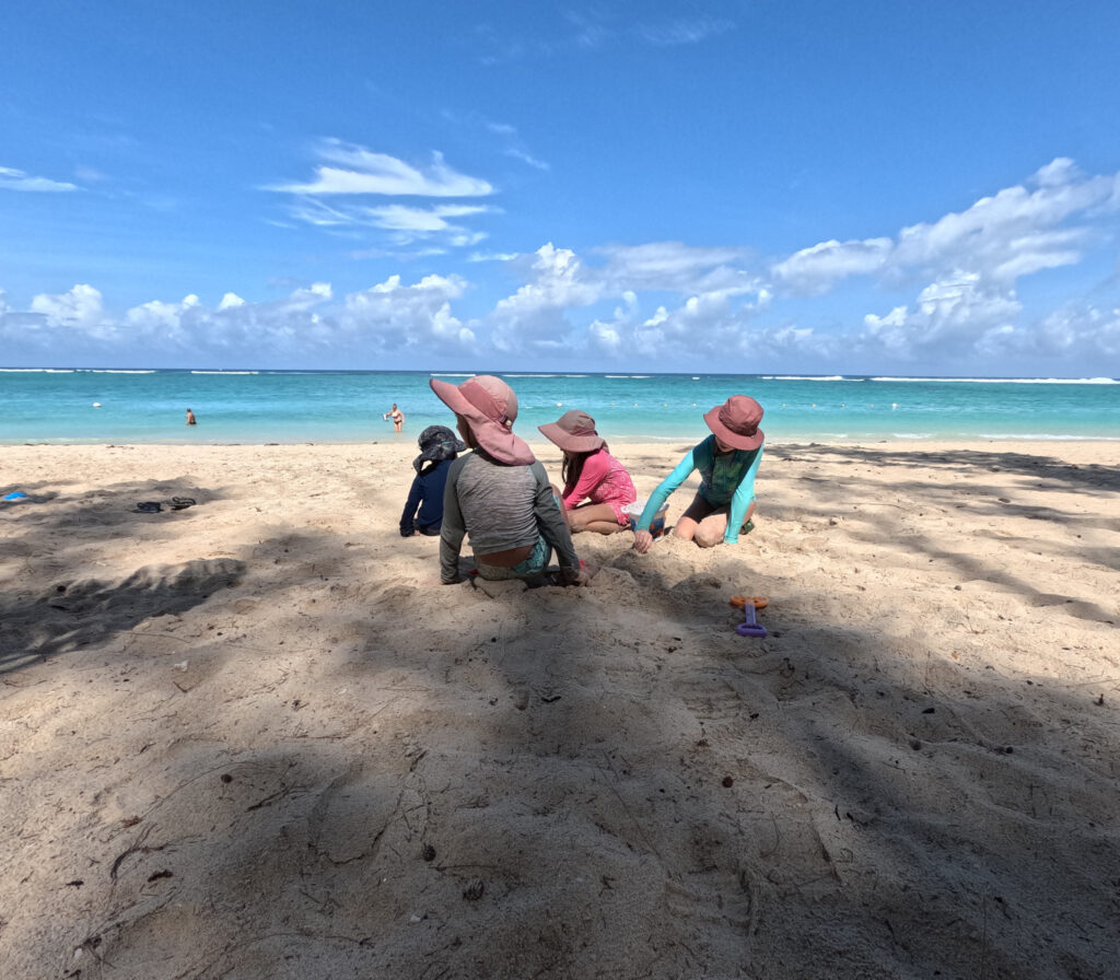 In Mauritius, we spent a decent amount of time at the beach. We primarily walked to Flic en Flac Beach, which is a combination of beach and wooded park space. On the weekends, the park would fill in with Mauritians with elaborate setups including tents, a cooking area, and sitting area, and big speakers. There were often generators involved as well. I primarily enjoyed relaxing on the beach while kids swam or played in the sand. We also bought snorkel gear early on that we used throughout our visit and left behind. During the short time we rented a car, we also visited Trioux Beach, Tamerin Beach, La Morne Beach, and Blue Bay. It is worth noting we all needed showers and wash our bathing suits after Tamerin Beach because of the silt.