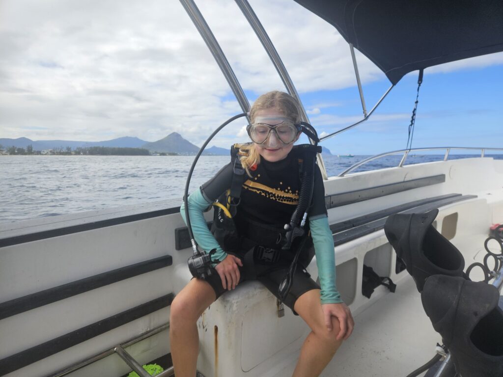 Near the end of our visit, we went on a dolphin boat ride. We arrived at Tamarin Bay at 7am to ride on a boat and see Spinnes and Bottlenose dolphins. We then headed to see Crystal Rock before going to Île aux Benitiers for a BBQ. The kids played in the sand for a few hours while we chatted with other travellers and enjoyed some Pheonix.