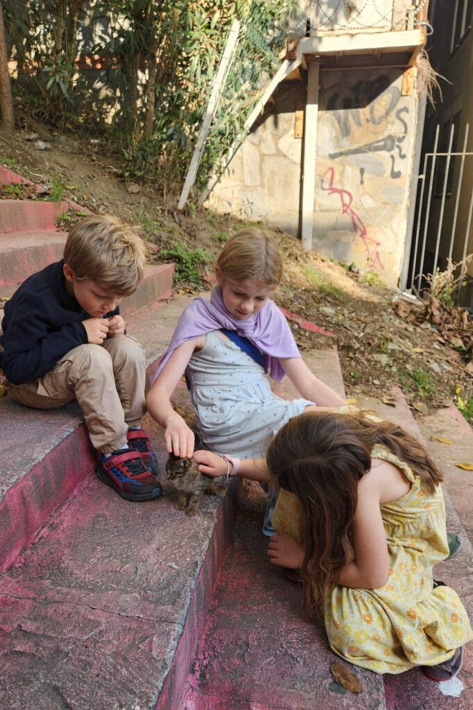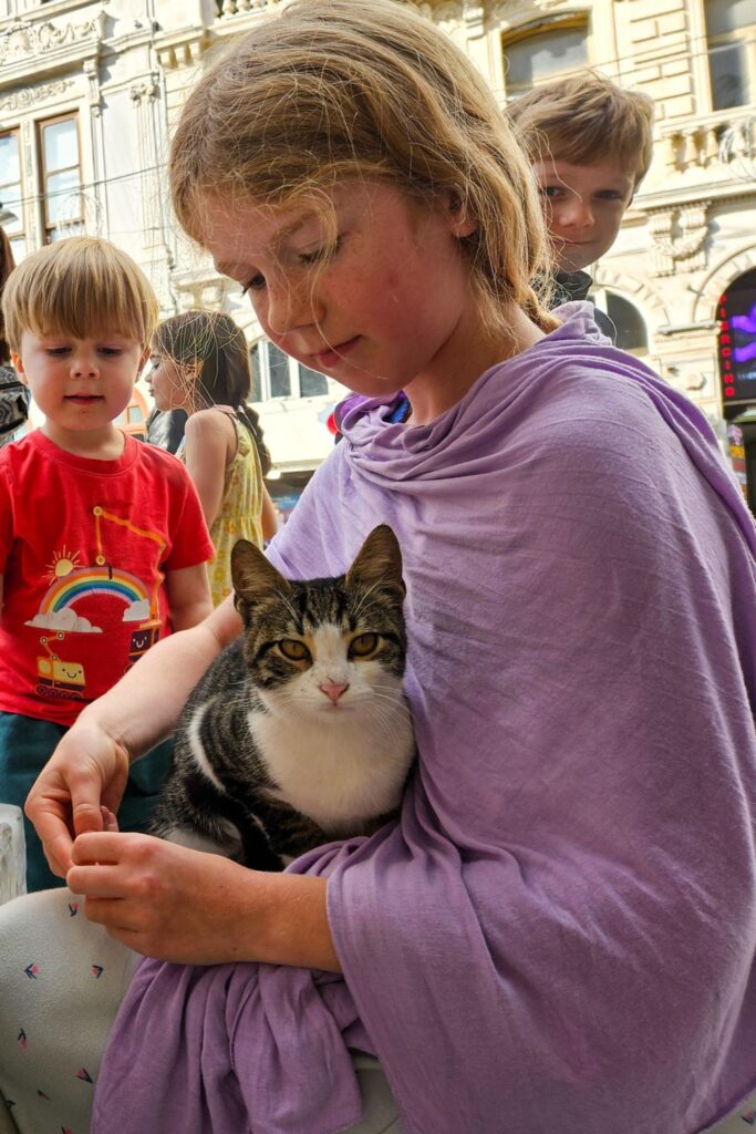 Our last day was low key. We very much appreciate that our host was willing to hold our luggage while we did a little last bit of adventuring. I realized I no longer needed to bathe myself and started the day at the hamam. After which, we ventured to Takism square to attempt shipping items home, play at the playground, ride the trolley, and get lunch. Lunch was pizza that hit the spot. Obviously, there was plenty of petting kittens along the way. Our departure included a ride with traffic to the airport where we enjoyed the lounge but sadly (and yet again) ran out of time to enjoy a play area before boarding a plane for Kenya.