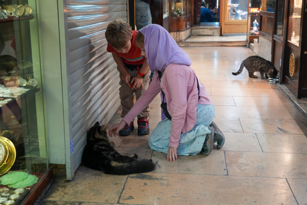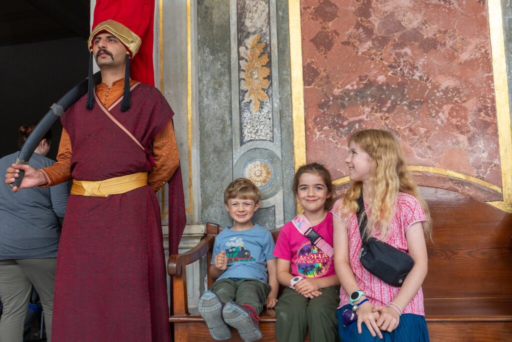 Our fourth day in Istanbul was a long one with a visit to the Topkapi Palace. We signed for a short guided tour followed by our own exploration of the harem and palace. The harem was much bigger than we expected and took a decent amount of time to explore and understand. After lunch in the small cafe in the palace, where our youngest was stung by a wasp, we further explored. We gained a better understanding of palace life and an appreciation for their royal garments. We also took in views, got a photo with a guard, and pet yet another cat. Our youngest also managed multiple head bonks on one statue (in addition to the wasp sting).