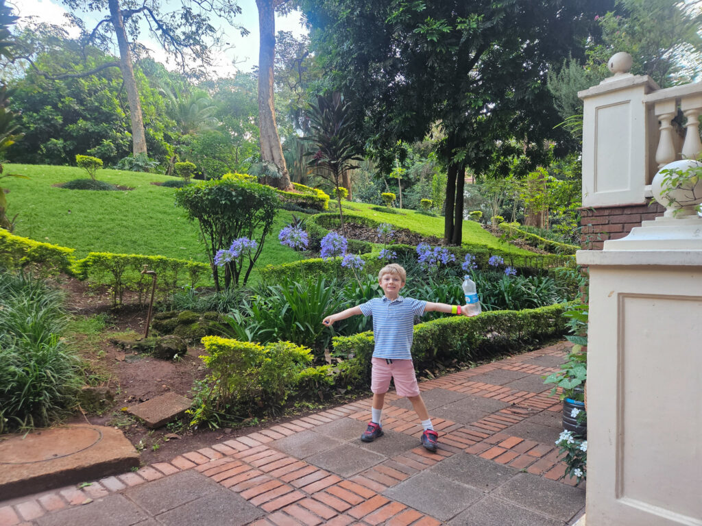 After a surprisingly smooth red eye flight with Turkish Airlines out of Istanbul, we landed in Nairobi at 3am. Thanks to our youngest kid, we were moved to a shorter customs line and the proceeded to hunt down our luggage and car seats before meeting with our driver. Due to the size of our family and luggage, they booked two cars to drive us to our apartment. Booking through our host was good because the driver was able to get us all the way to our apartment and show us how to open the many locks. We stayed in a spacious 3 bedroom, 2.5 bathroom apartment with a gym, pool (though the water was chilly), and daily housekeeping. We also had windows overlooking the oasis in the middle of the complex. The older kids enjoyed sitting by the windows and reading.