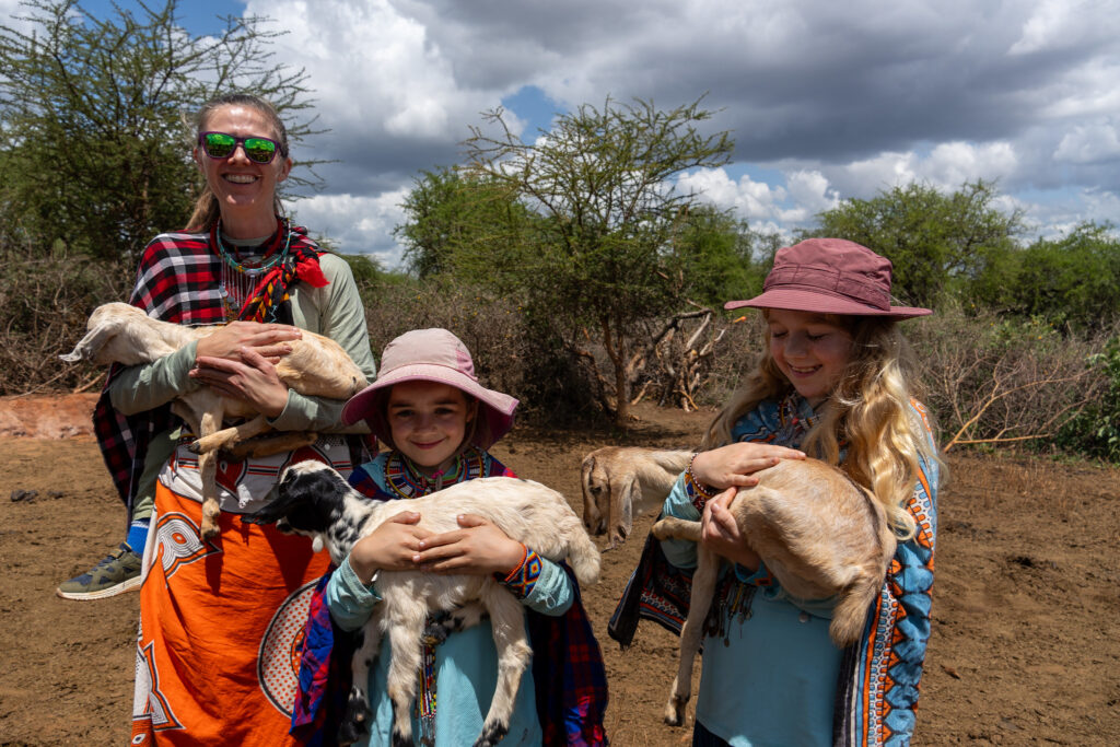 The following day was a big adventure out of Nairobi to a Maasai Village experience through Happy Tribe Travel. We were dressed in traditional attire by our hosts, learned to make Maasai beaded jewelry, herded and milked goats, made a fire, made Ugali, and danced. Everyone was kind and the children were so sweet, some very much enjoying touching A3’s hair.